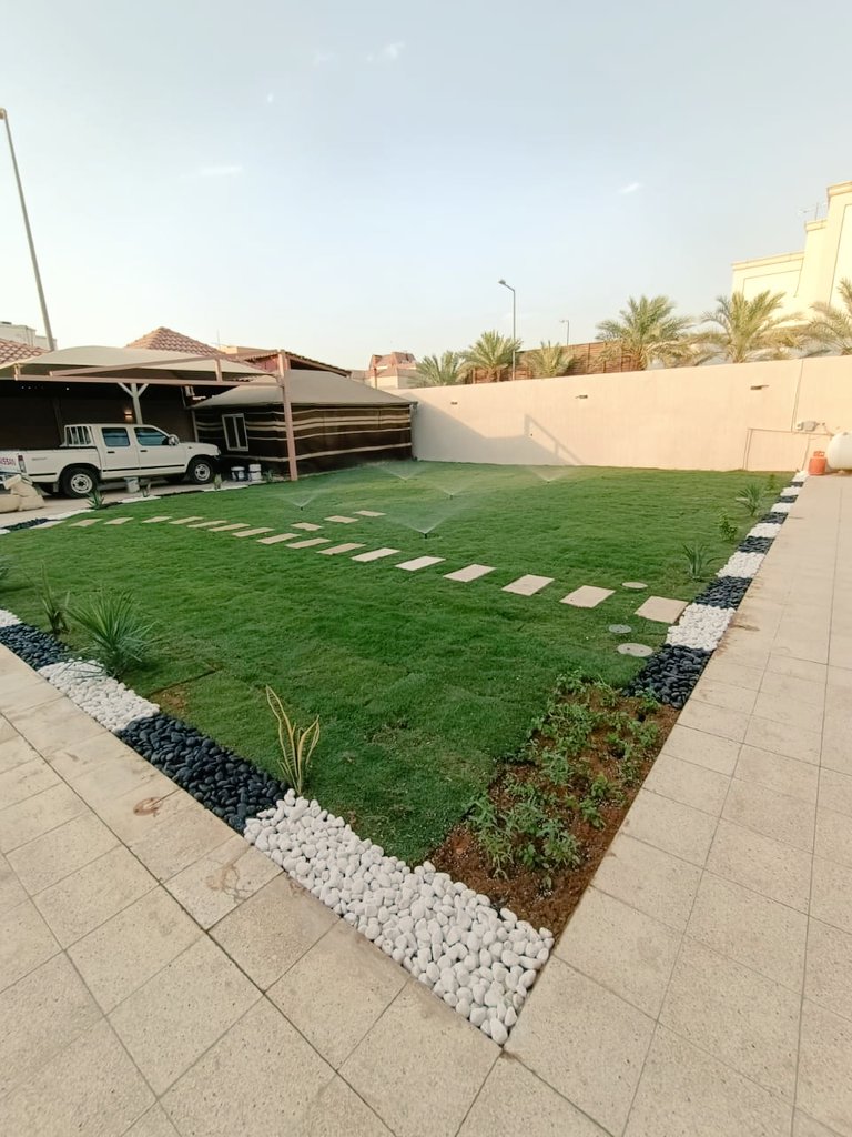 اختيار النوع المناسب من العشب: يجب اختيار نوع العشب الذي يتناسب مع مناخ الدمام الخبر، مثل عشب البافلو أو البرمودا.